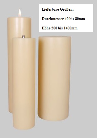 Die Dauerkerzen erhalten Sie in den Abmessungen: